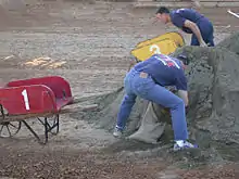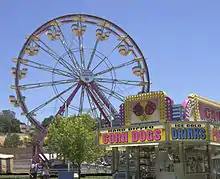 The El Dorado County Fair features four full days of exhibitions[2] contests and competitions, concerts and events, carnival rides, and Fair food galore.[3] Junior Livestock Auction and still exhibits,[4] such as photography, food items, artwork, homemade wine and homebrew are all on display throughout the Fair's four-day run. Friday night events in the grandstands usually consist of Mutton Bustin' and Humpz and Hornz Bull Riding. Other favorite and traditional activities, such as cooking demonstrations, Free Kid Workshops (usually sponsored by Home Depot) and games including Funnel Cake Eating Contests (for young and old alike), bean spitting contest, Big Wheels Races (usually sponsored by Gold Country Ace Hardware & Hobbies) and more all hosted by Flo the Clown! The famous Annual John M. Studebaker Championship Wheelbarrow Races take place on Sunday evening in the Grandstands.[5] The Father and Child Look-A-Like Contest happens on the main stage Sunday as part of the Father Day activities. The Fair concludes Sunday night at 10 p.m. on Father's Day.[6]