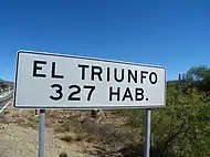 El Triunfo is a town in La Paz Municipality, Baja California Sur, Mexico, about 4.5 miles north of San Antonio. The town is located at an elevation of 483 meters (1,585 feet) above sea level and has a population of 327.[1] It is a former mining town.