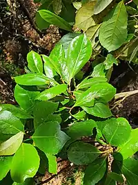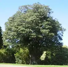 The New Zealand botanist Thomas Cheeseman described a variety of E. dentatus in an article in the 1907 issue of the Transactions and proceedings of the New Zealand Institute. Naming it Elaeocarpus dentatus var. obovatus, he described how, though E. dentatus is variable, he had "never seen specimens with leaves so broad and ovate."[24] This variety is recognised by the New Zealand Plant Conservation Network,[25] New Zealand flora,[26] as well as in Harry Allan's 1961 The flora of New Zealand.[27] As such, they describe two varieties: E. dentatus var. dentatus, the nominate variety, as well as E. dentatus var. obovatus, the variety with wider leaves.[28][12][29] It was not accepted, however, by Anthony Peter Druce in his unpublished 1993 Indigenous vascular plants of New Zealand.[28] It is listed as a synonym of Elaeocarpus dentatus by both The Plant List[30] and World Flora Online,[31] which superseded it.[32] The variety was mentioned in a Department of Conservation Conservation Status Report published in 2017, under the heading: "Data Deficient."[33]