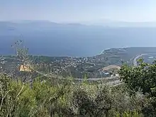 Elaeonas or Elaionas (Greek: Ελαιώνας meaning olive grove 'the place where olives grow', before 1949: Τρυπιά - Trypia[2]) is a village and a community in the municipal unit of Diakopto, in the northern part of the Peloponnese peninsula, Greece. It is on the Gulf of Corinth, 3 km west of Diakopto and 9 km southeast of Aigio. The Olympia Odos (Greek National Road Α8) (Patras - Corinth - Athens) passes south of the village. The community consists of the villages Elaionas, Metochi and Terpsithea. In 2011 Elaionas had a population of 671 (712 for the community).