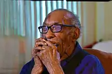 In 1994, Wilson was a recipient of a National Heritage Fellowship from the National Endowment for the Arts, which is the highest honor in the folk and traditional arts in the United States.[3] In that year he also recorded the bulk of the music included on his debut album.[1] Most of tracks on his 1995 LP This Train were recorded when Wilson was in his early eighties. The sides contained a mixture of solo efforts, some accompanied by his wife or with a church choir, and included "Ain't It a Shame", "This Train Is a Clean Train", and "Amazing Grace". The album also included six harmonica-dominated pieces unwittingly recorded with his children in 1948.[4] Wilson was still preaching, singing and playing harmonica in Detroit in 2015, at the age of 104.[5] Wilson died in Detroit, Michigan, on October 25, 2018 at the age of 107.[6]