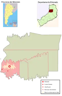 ![]() Eldorado Location of Eldorado in Misiones Province and Argentina ![]() Eldorado Eldorado (Argentina) | |