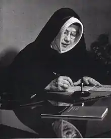 Although she was no longer Manhattanville’s president, she did not cease her advocacy work, nor did she lose her sense of humor. She said herself that “I won’t be knitting by the fireplace” in her retirement.[8] She continued to serve on New York Governor Nelson A. Rockefeller’s Commission on the Education and Employment of Women from 1963 to 1970, after which she began a more isolated retirement at Kenwood Convent, during which she worked on a classified educational project.[8] She died there of an illness on October 4, 1987 at the age of 91.[1]