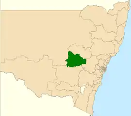 Orange is an electoral district of the Legislative Assembly in the Australian state of New South Wales. It is a regional electorate that covers four local government areas in their entirety: the City of Orange, Cabonne Council, Parkes Shire and Forbes Shire.[1] The seat has been held by Philip Donato of the Shooters, Fishers and Farmers Party since a by-election in November 2016.