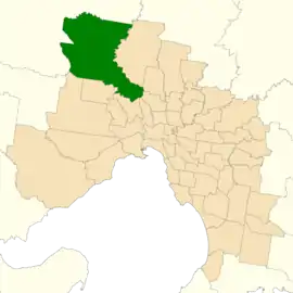 It is a new district that was created in the fast-growing outer northwestern fringe of Melbourne from areas in the district of Macedon. It is centred on the city of Sunbury, and includes the towns of Diggers Rest, Bulla, Westmeadows and Gladstone Park.[2]