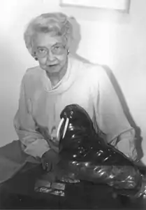 After her husband's death, Electra returned to Fort Worth to live near her mother. She volunteered at The Reeder School, a noted children's theater school run by Fort Worth Circle artists Dickson and Flora Reeder, until its closure in 1958.[6][2] She kept books for the nearby Gallery of Wonderful Things, on Byers Avenue in Fort Worth's west side, until 1959, when owner Terese Law Hershey moved to Houston and left Carlin the gallery. Carlin continued exhibiting art at the gallery as well as Ridglea Country Club,[7] showing works by Fort Worth Circle-affiliated artists like Bill Bomar, Cynthia Brants, Blanche McVeigh, Edward Dickson Reeder, and Bror Alexander Utter.[8] She renovated an old laundromat on 7th Street and moved the gallery there in 1959.[2] In January 1960, she mounted the first exhibition of Inuit art in Texas;[2][9] the Gallery of Wonderful Things was renamed "Carlin Gallery" three months later.[10] Carlin emerged as a regional tastemaker, selling Inuit art to the Amon Carter Museum, the Museum of Fine Arts Houston, and the McNay Art Museum in San Antonio.[2] She continued selling the work of local and Inuit artists, and spoke at an Inuit art conference at the Smithsonian in 1962. In 1963, she was appointed to the City of Fort Worth Art Commission along with Ruth Carter Stevenson.[11] Carlin represented nationally known artists like Peter Hurd and Henriette Wyeth Hurd, the daughter of N. C. Wyeth, and showed ceramics and work by Texas artists. In 1964, she expanded the Carlin Gallery space to include an outdoor sculpture garden[12] designed by architects Albert S. Komatsu and Emery Young, Jr., and landscape architect Elbert Spence.[13] Throughout the 1960s, Carlin lectured women's clubs on how to purchase and decorate the home with fine paintings and partnered with the Junior League on exhibitions in other Texas cities.[14][15][16] In 1970. the Carlin Gallery mounted a memorial |retrospective exhibition for prolific Fort Worth printmaker Blanche McVeigh that included "virtually all" of her prints.[17] Carlin organized an art exhibition at Fort Worth's first Mayfest celebration, organized by the Junior League in 1973.[18] She was also a donor to Streams and Valleys' Trinity River beautification project in the 1970s.[19] In 1990, Carlin announced the closing of the gallery. Over the course of 31 years, Carlin Gallery held over 150 exhibitions with work by 130 artists[20] and steered the development of numerous museum collections in Texas.