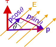 An object with an electric dipole moment p is subject to a torque τ when placed in an external electric field E. The torque tends to align the dipole with the field. A dipole aligned parallel to an electric field has lower potential energy than a dipole making some angle with it. For a spatially uniform electric field across the small region occupied by the dipole, the energy U and the torque are given by[3]