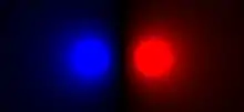 Potential map of a physical electric dipole. Negative potentials are in blue; positive potentials, in red.
