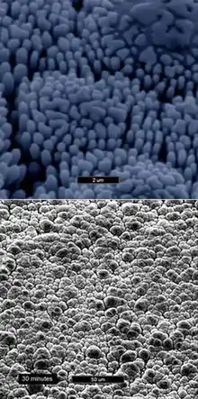 The nodular structure reduces surface-to-surface contact of two mating/sliding surfaces, thus reducing friction and improving heat dissipation.[11] It is also claimed to reduces drag in both gas and liquid flows.[12]