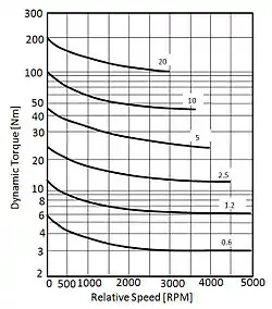 When considering torque, the question of using dynamic or static torque for the application is key. For example, if a machine is running at a relatively low rpm (5–50 depending upon size) then dynamic torque is not a consideration since the static torque rating of the coupling will come closest to where the application is running. However, if a machine is running at 3,000rpm and the same full torque is required the result will not be the same because of the difference between static and dynamic torques. Almost all manufacturers put the static rated torque for their couplings in their catalog. If a specific response time is needed, the dynamic torque rating for a particular coupling at a given speed is required. In many cases, this can be significantly lower. Sometimes it can be less than ½ of the static torque rating. Most manufacturers publish torque curves showing the relationship between dynamic and static torque for a given series of couplings. (T-1)