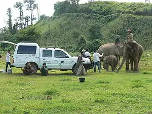 The group suggests that information collation, surveying and national census have proved ineffective at providing accurate data on wild and domestic elephant populations,[2] and focusses its efforts in the areas of veterinary, educational and economical support.[3] ElefantAsia has possessed a veterinary care unit and carries out public awareness campaigns and environmental education within Laos.