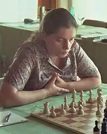Fatalibekova successfully played in the Women's World Chess Championship 1978. In 1976 she won the Tbilisi Women's Interzonal (ahead of Maia Chiburdanidze).[2] In 1977 in the first round of the knock-out series of matches Fatalibekova won against Valentina Kozlovskaya in Sochi - 6 : 2 (+4 −0 =4) but in the semifinals lost to Alla Kushnir in West Berlin - 3½ : 6½ (+2 −5 =3).[3] Fatalibekova was awarded the title of Woman Grandmaster in 1977.