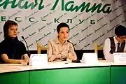 ![]() Evgenia Otto and Elena Kostuchenko sitting side by side at an event. | |