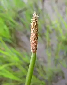 Eleocharis cylindrostachys is a rush type plant growing in dense clumps from 40 to 60 cm tall. Found growing in moist situations in New South Wales and Queensland, Australia. The specific epithet cylindrostachys is derived from Latin and refers to “a cylindrical head of corn”.[1][2]