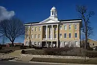 The Society has occupied its current home, Old Main, since 1987. Old Main opened on December 1, 1856, as a private school, the Elgin Academy, and is noted for its Greek Revival design. Old Main was Elgin’s first building entered on the National Register of Historic Places. In 1911 lightning caused a fire that destroyed Old Main’s roof which was replaced without the building’s distinctive gabled roof and cupola. The Elgin Academy continued to use the building until 1969 when financial pressures and new safety codes led to its abandonment. The Academy offered Old Main to the City of Elgin which in 1976 decided that its preservation would be an appropriate bicentennial community project. Prominent Elgin merchant John Spiess proposed a “Buck-a-Brick” fund raising campaign selling 150,000 bricks being laid in Fountain Square Plaza Mall. The successful campaign enabled Elgin to take ownership of the building and, despite another fire in 1978, restore the building’s exterior in 1979-80. In 1981 the City of Elgin leased Old Main to the Society. With additional funds raised by the Society and from state and federal sources and with many hours of volunteer labor by members of the Society, Elgin’s Golden K Kiwanis Club and Gifford Park Association, Old Main’s interior was refurbished for museum use. The Society moved into Old Main’s first floor in 1987 and has used all three floors since 1991.[1][2]
