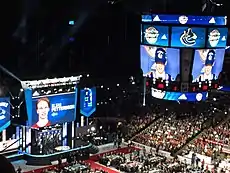Pettersson was ranked second among European skaters by the NHL Central Scouting Bureau in his first year of eligibility for the 2017 NHL Entry Draft.[5] He was selected as the first Swedish player taken in the draft, fifth overall, by the Vancouver Canucks, joining former linemate and Canucks prospect Jonathan Dahlén on 23 June 2017.[6] It was speculated the Canucks drafted Pettersson based partly on highly successful chemistry with Dahlén on the top line for Timrå IK, where they finished fifth and ninth in league scoring as teenagers.[7][8] The two scored on the first shift they ever played together in Sweden.[9]