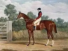 Elis was a chestnut horse with a white blaze and long white socks on his hind legs bred by Charles Greville. He was the seventh of ten foals produced by Olympia (1815–1840), a daughter of Sir Oliver. Olympia produced several other good winners including Stockport and Epirus.[1] His sire, Langar (1817–1841) won the Gascoigne Stakes at Doncaster and many races in Ireland. He stood as a stallion in Ireland before moving to stand at Tickhill Castle in Yorkshire in 1831.[2]