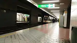 Elisabeth premetro station has only one entrance that leads to level -1. The ticket hall is on level -1, while on level -2 are both platforms, each 60 meters, in front of each other.