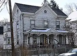 The Elisha Hopkins House is a historic house in Somerville, Massachusetts. The 2.5-story wood-frame house was built c. 1868 by Elisha Hopkins, a ship's master. It has a typical period Italianate plan, with three bays across and small center gable. The gables have oculi windows characteristic of the style, and there is a later Colonial Revival front porch with turned posts and brackets, and a gable over the entry stair.[2]