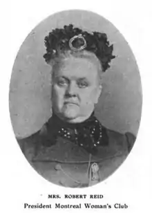 In 1892, Reid held a meeting at her home and there founded the Montreal Woman's Club, one of Canada's first women's organizations.[4] She was the organization's president for its first ten years. She was also one of the founders and leaders of the Montreal Council of Women.[5] Reid took an interest in a range of reform issues, from parks and playgrounds to temperance, public health, and immigration policy. She served on the board of directors of the Victorian Order of Nurses in Montreal in the 1920s.[6]