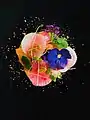 Watermelon radish, passion fruit, and citrus salad topped with edible flowers and pistachios