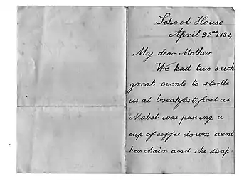 In April 1884, Nettie, aged 9, experienced the 1884 Colchester earthquake while eating breakfast with some of her family. She was staying with her maternal grandparents at Dedham in Essex, which is about 8 miles (13 km) from Colchester. The same day she wrote to her mother telling her about her experiences.