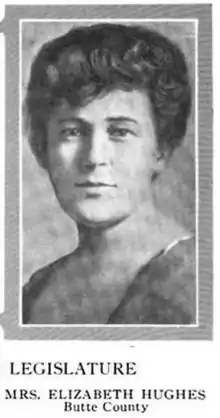 In 1918 Elizabeth Hughes, along with Esto Bates Broughton, Grace S. Dorris, and Anna L. Saylor, was elected to serve in the 1919 California State Assembly.[3][4] Hughes was chairwoman of the House Education Committee.[2]
