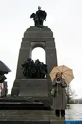 May said she was having "a lousy week" because of the federal government's weak action plan on the environment, but stood by her comments.[26] In a Green Party of Canada press release, May stated that she was referencing a Chamberlain Nazi appeasement analogy made by journalist George Monbiot a few days earlier.[28] saying "I made reference to Mr. Monbiot's statement to highlight the damage being done to Canada's international reputation, something that should concern all Canadians."[29][30]