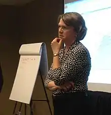 Elizabeth Murphy Topp is an American pharmaceutical scientist and educator known for her work in solid‐state chemical stability of proteins and peptides. In 2000s Topp introduced solid-state hydrogen-deuterium exchange as the method for stability characterization of lyophilized biopharmaceutical formulations.[2][3] She is the Chief Scientific Officer at National Institute of Bioprocessing Research and Training (NIBRT) in Dublin, Ireland since September 2019.[4] Topp was on the faculty at the University of Kansas Department of Pharmaceutical Chemistry from 1986 to 2009. She has been the Head and Dane O. Kildsig Chair at the Department of Industrial and Physical Chemistry at Purdue University College of Pharmacy from 2009 to 2017. Topp has been elected a fellow of American Association of Pharmaceutical Scientists in 2010 for "making sustained remarkable scholarly and research contributions to the pharmaceutical sciences".[5] In 2015 Topp co-founded, with Alina Alexeenko, an industry-university consortium LyoHUB for advancing pharmaceutical lyophilization technology.[6]