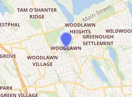 Woodlawn is an area of eastern Dartmouth, Nova Scotia in the Halifax Regional Municipality, Nova Scotia that is mainly residential and retail. It is situated within an area with Highway 111 on the west, Portland Street (Route 207) on the east and Main Street (Trunk 7) on the North side. The first three digits of the postal code are B2W.