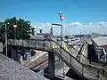 The footbridge and exterior of the station.