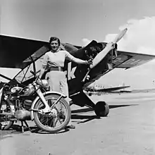 Long distance flying was her real passion and in 1931 she seized the opportunity to fly to Portuguese Guinea (now Guinea-Bissau) West Africa on a scientific expedition. On the return journey, engine failure resulted in a crash-landing in the Sahara. With the help of nomadic Tuareg tribesmen, Beinhorn joined a camel caravan to Timbuktu. She subsequently returned to the crash site to recover parts of the plane.[8] Word of her plight reached the French authorities and they sent a military two-seater plane to collect her.[9][10]