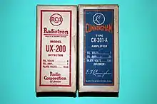 Before 1915, triode vacuum tubes were spherical or shaped like an incandescent light bulb. Cunningham took a different route. His triode tube was tubular and had the capability of being double sided.[4] This design allowed dual filaments, which provided longer operating life. Cunningham was able to produce this vacuum tube in large numbers and maintain quality. The rise in amateur radio interest was a great asset to Audio Tron sales. This design proved influential on vacuum tube production, and prompted De Forest to come up with a Tubular Audion.[5]