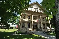 The Elms was built in 1859 by the A. C. Denison Company, and operated as the Eagle Hotel, with a reported capacity of forty rooms. A. C. Denison took over the property as his private residence in 1870. By 1887 it had again been opened as a hotel, this time as the "Hotel Elms". The building has had a long association with the paper mill (which stands just to the north).[2] The building currently houses an antiques and crafts shop.