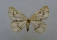 Elophos vittaria is a moth of the family Geometridae first described by Carl Peter Thunberg in 1788. It is found in two separate areas in Europe. Subspecies mendicaria is found in the Alps and Mountains in central Europe, while subspecies vittaria is found from Fennoscandia, east through Russia and Asia to Japan.