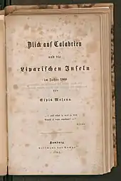 Daughter of a Hamburg banker, she was born in England and spent much of her early life in Italy and England. She was well known in connection with the movement for Italian unity and freedom and edited the first version of Garibaldi's memoirs in German, published in English in 1887. After first meeting Garibaldi on the island of Caprera in 1857 she received affectionate letters from him and an ultimately unsuccessful proposal of marriage in 1858.[1] After 1865 she lived in Chania.