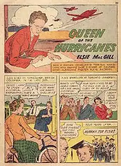 Elizabeth Muriel Gregory "Elsie" MacGill, OC (March 27, 1905 – November 4, 1980), known as the "Queen of the Hurricanes", was the world's first woman to earn an aeronautical engineering degree and was the first woman in Canada to receive a bachelor's degree in electrical engineering. She worked as an aeronautical engineer during the Second World War and did much to make Canada a powerhouse of aircraft construction during her years at Canadian Car and Foundry (CC&F) in Fort William, Ontario.[1] After her work at CC&F, she ran a successful consulting business. Between 1967 and 1970, she was a commissioner on the Royal Commission on the Status of Women in Canada, published in 1970.[2]
