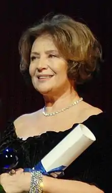 Emília Vášáryová, Doctor Artis Dramaticae (hon.) (Slovak pronunciation: [ˈemiːlija ˈʋaːʂarijɔʋa]; born 18 May 1942)[2] is a Slovak stage and screen actress, referred to as the "First Lady of Slovak Theater".[3][4] During her over five decades long career, she has received numerous awards including the Meritorious Artist (1978),[5] Alfréd Radok Award (1996),[6] Czech Lion Award[7] Golden Goblet Award (2008),[8] and most recently the honorary degree Doctor Artis Dramaticae Honoris Causa (2010) as the only female to date,[9] and ELSA (2010).[10] While her sister is former diplomat Magdaléna Vášáryová,[11] Czech media regards her as an "Honorary Consul of Czech and Slovak Relations".[12]