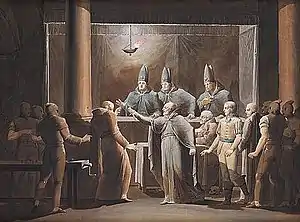 On the advice of Desprez and the sculptor, Johan Tobias Sergel, he used the model school at the Royal Swedish Academy of Fine Arts to improve his skills and promote himself. In 1802, he was chosen as an agré (member-candidate) at the Academy and, the following year, was awarded full membership. In 1812, he was named a Professor of drawing and, in 1813, was appointed a court painter.