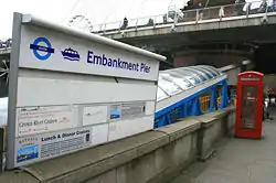 Embankment Pier is a pier on the River Thames in City of Westminster, London. It is located on the north bank of the river, immediately next to the Hungerford Bridge and directly outside the river entrance to Embankment Underground station. It is also conveniently close to Charing Cross railway station.