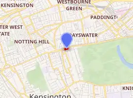 The Embassy of the Czech Republic in London is the diplomatic mission of the Czech Republic in the United Kingdom.[1] It is located at the junction of Kensington Palace Gardens and Bayswater Road in a building it shares with the Embassy of Slovakia.[2]