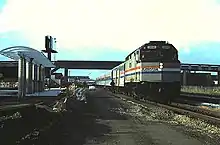 Oakland Central station, Amtrak's primary stop for Oakland (and San Francisco via connecting buses) was damaged in the 1989 Loma Prieta earthquake; Amtrak began using a temporary station at the site.[8] A new station was quickly constructed in nearby Emeryville - close to the San Francisco–Oakland Bay Bridge - on the site of a former cement plant. Emeryville station opened on August 13, 1993, though construction was not completed until the next year.[2] Only the Capitols and San Joaquins initially moved to Emeryville; long distance trains continued to use Oakland Central while track work at Emeryville continued.[9]