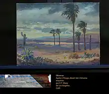 In 1904 Emil took employment as an instructor at the Los Angeles School of Art and Design in MacArthur Park (then Westlake Park).[5][7] The school, located at 624 S Alvarado Street and overlooking Westlake Park, was originally called the Westlake Art Studios School and was both founded and managed by Mrs. Carolyn Wood.[8][9] In Edan Milton Hughes's book Artists in California under the biographical entry for Leon Mazy it states "With his brother Emil, he operated the Westlake Art Studio."[10] It is unclear whether "Westlake Art Studio" and "Westlake Art Studio Schools", though of the same location, were the same or different entities. If the same entity then the statements about Mrs. Carolyn Wood and Leon and Emil Mazy may conflict. Two months after becoming a design instructor at the school, Emil showed his interior designs at the school's Pallette Club.[11]
