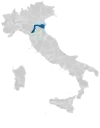 Emilia-Romagna is one of the 29 constituencies (Italian: circoscrizioni) represented in the Chamber of Deputies, the lower house of the Italian parliament.[2] The constituency currently elects 45 deputies, more than any other in the parliament. Its boundaries correspond to those of the Italian region of Emilia-Romagna. The electoral system uses a parallel voting system, which act as a mixed system, with 37% of seats allocated using a first-past-the-post electoral system and 61% using a proportional method, with one round of voting.[3]
