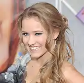 Osment's entry into the entertainment industry began in 1997, when she was cast in a commercial for flower delivery company FTD.[1] She was featured in many commercials, after which she made her acting debut in the 1999 film The Secret Life of Girls, starring Eugene Levy and Linda Hamilton. The same year, she co-starred with Glenn Close in the Hallmark Classic television film Sarah, Plain and Tall: Winter's End, a role that would lead to a Young Artist Award nomination.[1] Emily also made a brief appearance in the Smash Mouth music video All Star as the girl in the referee uniform. Since then, she has gone on to do a number of roles, such as appearances on television shows like Touched by an Angel, Friends, and 3rd Rock from the Sun. In another small screen role, she played Tara Sparkler in the series Goosebumps. Osment made her film debut in 2002 as Gerti Giggles in Spy Kids 2: The Island of Lost Dreams, a role for which she won the Young Artist Award for Best Performance in a Feature Film. In 2003, she reprised her role in the third film of the Spy Kids series, Spy Kids 3-D: Game Over, which grossed $197 million worldwide.[7][8] Osment also voiced roles in Lilo & Stitch 2: Stitch Has a Glitch and Edward Fubbwupper Fibbed Big.