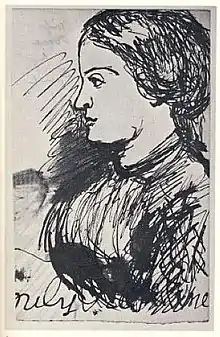 Orme was born in 1835, one of eight children to parents Eliza Andrews (1816-1892) and Charles Orme (c1807-1893), from a wealthy brewing/distilling family.[1] In her early years at Avenue Road in Regent's Park, London she met leading members of the Pre-Raphaelite movement such as Holman Hunt, the Rosettis and Thomas Woolner.The closeness of the family to this movement is shown in an informal sketch of Orme by Dante Gabriel Rossetti, when she was about 18 years old.[2]