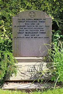 Tinne studied as a domestic science teacher at Edinburgh School of Cookery, between 1904 and 1906, then moved to Aigburth, Liverpool to live with her maternal uncle, William Brogden Patterson.[1] There she found a teaching role at Liverpool Training School of Cookery & Technical College of Domestic Service, where she remained for three years until 1909.[1] During this period Tinne became engaged to Philip Frederick Tinne, a general practitioner whose family had a history as profitable sugar merchants and ship owners.[3][4] The couple married at the Welsh Presbyterian Church in Toxteth, Liverpool on 14 July 1910 and moved into a cottage in Aigburth.[5] They had six children, Elspeth, John, Bertha, Helen, Alexine and Philip, along with another who died in infancy,[6] and the growing family meant that they moved into a larger property in 1923 with an extension large enough for Philip's surgery at the rear of the house.[5]