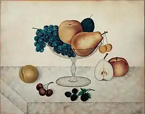 One of Cady's still-life paintings, Fruit in Glass Compote of c. 1895, is in the collection of the American Folk Art Museum, to which it was donated by Ralph Esmerian.[2] A nearly identical piece, dated c. 1890, is owned by the Abby Aldrich Rockefeller Folk Art Museum.[3]