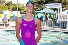McKeon also collected two silver medals for the 4×100 metre medley relay and the 4×100 m mixed freestyle relay.[36] In the mixed 4×100 metre freestyle relay, she set a new Oceanian and Australian record of 3:19.97 in the final along with her relay teammates Kyle Chalmers, Clyde Lewis, and Bronte Campbell.[37] In individual events she received a bronze medal for the 100 metre butterfly with a time of 56.61[38] and finished fourth in the 100 metre freestyle 0.29 seconds behind bronze medallist Sarah Sjöström of Sweden.[39]