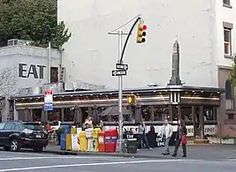 The diner had previously had its original windows changed and its monitor roof hidden from the outside.[3] The three partners painted "EAT" in large letters on a wall behind the diner, put in a miniature, stainless steel, a stylized outline of the Empire State Building on a corner of the roof, and replaced the Formica tabletops and counters with black glass.[3] The partners also opened Ruskay's, anothe restaurant, on Columbus Avenue, that same year, and would open Rick's Lounge, in downtown Manhattan on Eighth Avenue, in 1981.[4]